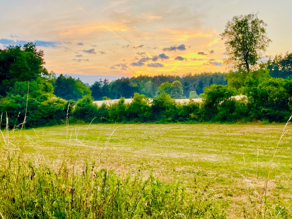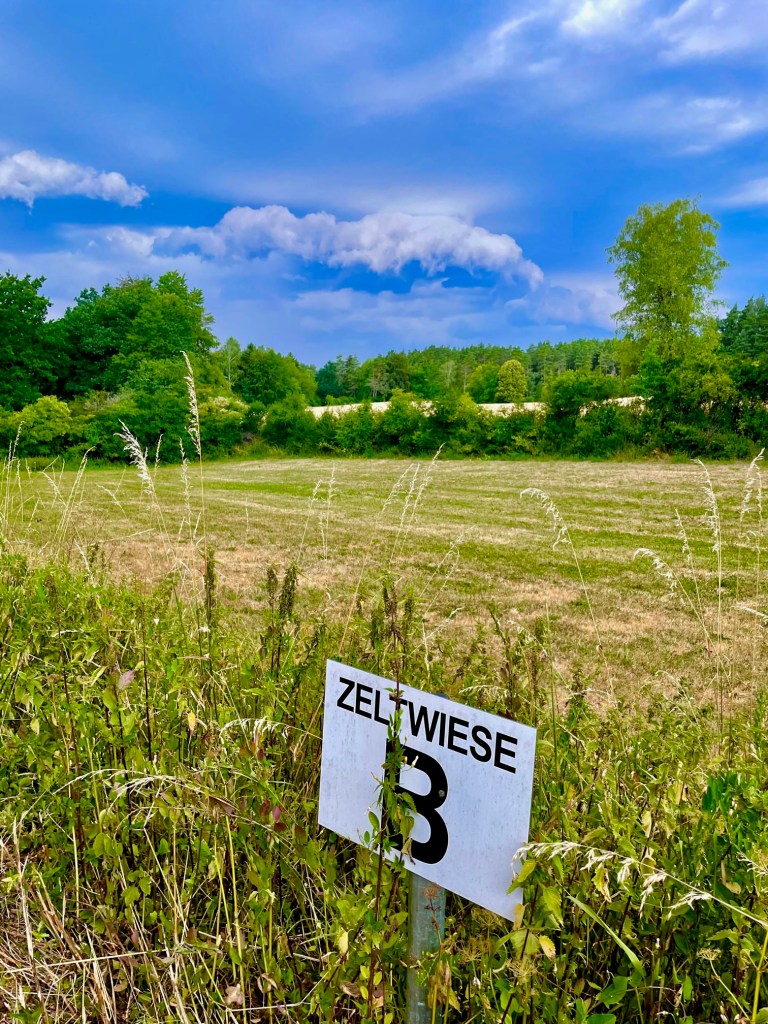 Nach diesem reichhaltigen und wirklich leckeren Essen schlendern wir durch die Abend-Hitze in Richtung unserer Zeltwiese. Am Horizont sind schwarze Wolken aufgezogen. Wir lernen unsere Zeltnachbarn kennen. Tommi, ein witziger Typ mit einem Gesicht wie John McEnroe und einer Lockenpracht wie Paul Breitner zu besten Zeiten, und seine Familie aus Berlin-Weißensee. Das gemeinsame Berliner Kennzeichen schafft gleich eine vertraute Gesprächsgrundlage. Wir tauschen uns fachkundig über Brandenburger Seen im Berliner Umland aus und über die Wetterprognose für die Nacht. Wir sind uns einig, dass da in der nächsten Stunde was kommen wird. Tommi empfiehlt uns, die Zeltschnüre noch mal nachzuziehen. 10 Minuten später bricht das Unwetter über uns herein. Starkregen, Windböen und ohrenbetäubende Donnerschläge. Wir flüchten uns zu viert in den Caddy und hoffen, dass unser Zelt hält. Obwohl es erst 20 Uhr ist, ist es draußen stockdunkel geworden. Nur die Blitze, die in kurzer Abfolge über den Campingplatz pfeffern, sorgen für Sekunden der Helligkeit. Nach einer knappen Stunde ist das Naturschauspiel vorbei. Das Gewitter ist abgezogen und am Horizont taucht die Sonne aus den Wolken und macht sich auf den Weg, hinter den Gipfeln der Fränkischen Schweiz zu versinken. Wir sind froh, dass das Zelt gehalten hat und trocknen unsere Stühle und den Tisch ab.